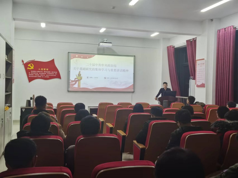制度政策解读——了解实情。其次地质工程系硕士生二支部支部书记吴冬宇老师以二十届中共中央政治局关于基础研究的集体学习与重要讲话精神为基石做了相关解读。让各位同志了解到了国家新政策下的各种有用信息,学科融合的大趋势以及对于冷门学科的发展和加强。其中谈到地质工程学科是不可或缺的一门科学,我们需要认真学习,从基础研究出发,让大家真正的认识地质工程的内涵与底蕴。