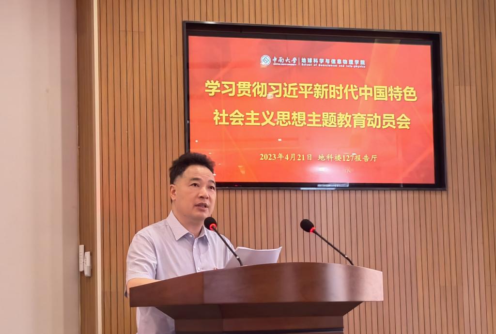 就准确把握目标要求、高标准高质量开展主题教育,邵拥军书记强调,各党支部和广大党员、干部要迅速行动起来,把主题教育的总要求和目标任务不折不扣落实好,在完成好“规定动作”的基础上,注重彰显地信特色,做好“自选动作”,把开展主题教育同贯彻落实党中央各项决策部署结合起来,同推动学院中心工作结合起来,充分发挥主题教育的正向牵引作用,着力解决理论学习、政治素质、能力本领、担当作为、工作作风、廉洁自律等6个方面的问题,实现凝心铸魂筑牢根本、锤炼品格强化忠诚、实干担当促进发展、践行宗旨为民造福、廉洁奉公树立新风。用党的创新理论进一步统一思想、统一意志、统一行动,推动党员、干部不断攻坚克难、干事创业,推动学院的高质量发展。