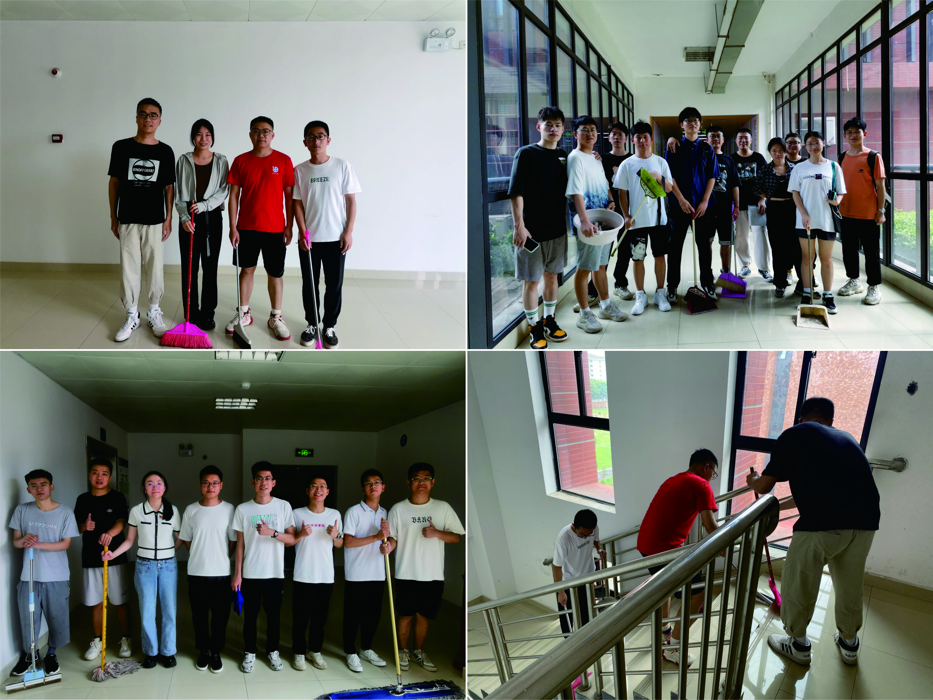 第一部分为“我为母校做贡献”主题教育实践活动。毕业生党员以支部为单位,对地科楼各楼层楼道及交互空间进行了打扫,主要的工作任务是清扫楼道的垃圾、捡拾杂物、擦洗书柜、桌椅等。