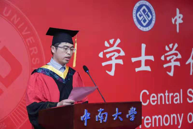 接下来,在副院长邹滨宣布拟授予学士学位的学生名单后,优秀学生代表遥感1701班薛琛昊发言,他回忆了这四年里与中南、与地信、与同学相处的点点滴滴,自己对于学校、对于老师的感激之情溢于言表,同时他也真挚地祝愿同学们前程似锦。