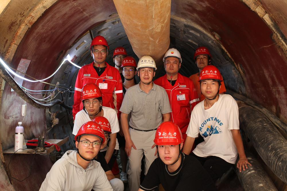 地质工程专业认识与设备实习是暑期本科生重要的实践学习环节之一。实习指导团队充分挖掘思政元素,将“家国情怀”和“艰苦奋斗”融入到实践教学中。7月上旬,在全球最大的地下工程装备制造基地——铁建重工长沙第二产业园区,师生共同领略了高端地下工程装备的风采。从创新研发、制造生产,再到新时期铁道兵的精神和奋斗,学生们纷纷为之震撼。在湘雅路过江通道施工现场,学生们冒着近40度高温近距离接触刀盘直径达到15.01米的“星盛号”盾构机。面对断层破碎带和浅覆土的双重地质难题,建设者们发扬艰苦奋斗精神,将“大国重器”成功运用在地下工程的非开挖建设中,学生们强大的使命感也油然而生。