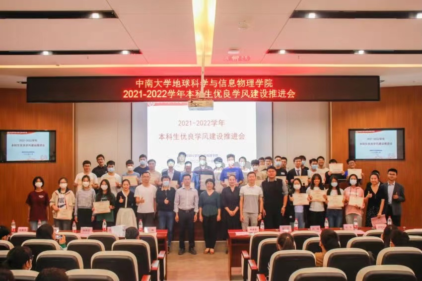于2022年11月12日在地球科学楼127报告厅顺利召开2021-2022学年本科生优良学风建设推进会。地信院党委副书记李建军,地信院副院长邹滨,地信院研究生辅导员田可,地信院团委书记、21级辅导员刘琦,22级辅导员刘凯,19级辅导员彭璐, 20级辅导员杨通田,21级辅导员杨晨雨,出席此次会议,各年级代表及获奖集体、个人参加此次会议。会议由学风建设专干、20级辅导员何可沁主持。