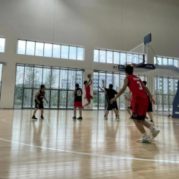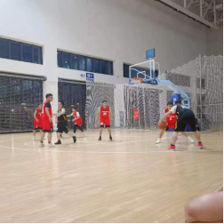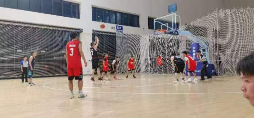 新校区篮球馆拉开帷幕,参赛的双方为院教职工男篮代表与毕业年级各专业学生代表,每个专业都有老师参加,每个班级都有学生上场。