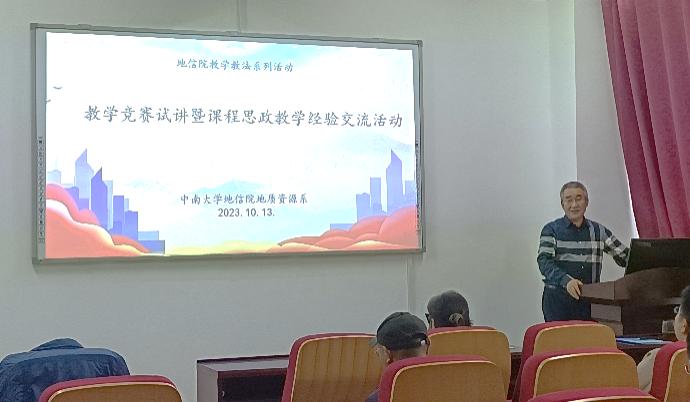 全面推进高校课程思政建设是落实立德树人根本任务的战略举措,而着力于提升专业教师的课程思政建设能力是开展课程建设的关键环节。近日,地质资源系借第四届全国大学青年教师地质课程教学比赛契机,在开展课程比赛试讲活动的同时,邀请督导专家对全系教师开展课程思政教学能力专题培训,并针对工科专业课程思政建设中的重点、难点、前瞻性问题开展了深入讨论。