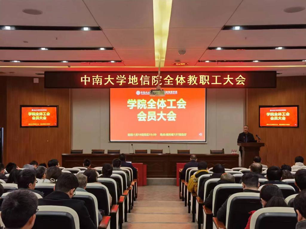 2024年1月19日下午,地信院工会换届大会在地科楼127召开,院领导及全院教职工参加会议。会议由院党委副书记刘浩主持。