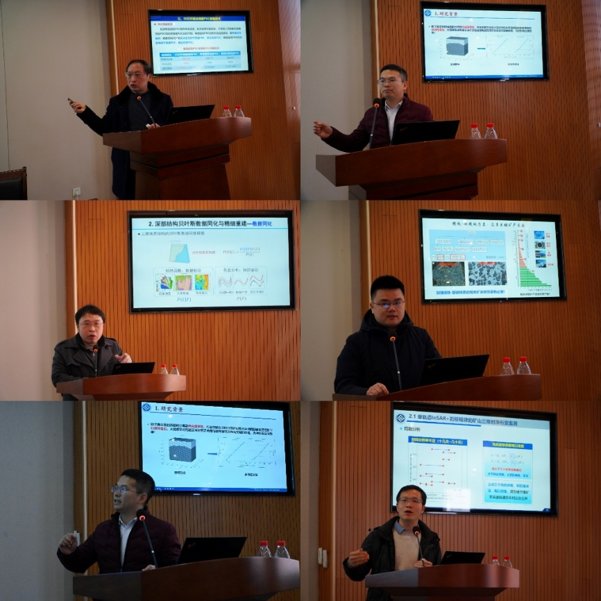随后,会议进入第三阶段学术交流环节,由刘亮明、张绍和、曹勇华、郭荣文、邓浩、杨泽发6名教师作学术报告,总结了斑岩系统大规模铜金成矿的深部-浅部耦合动力学计算模拟及智能预测、InSAR矿山三维形变监测与参数反演等成果。