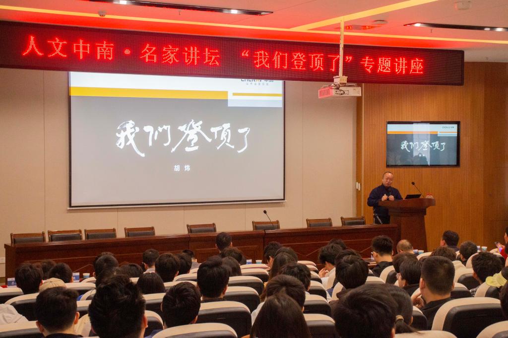 “人文中南”名家讲坛——胡炜“我们登顶了”主题讲座顺利举办