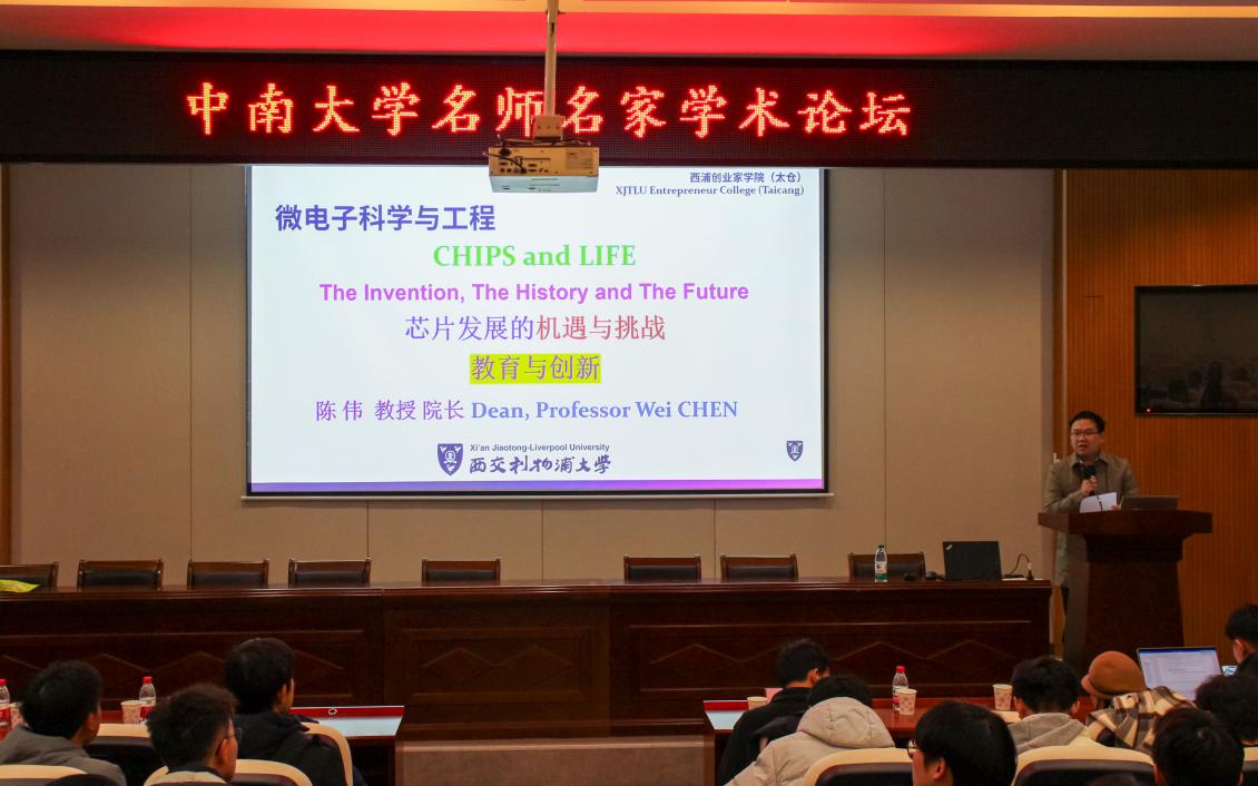 名师名家学术论坛”在地科楼127开讲。本期论坛的主讲嘉宾是西交利物浦大学芯片学院院长陈伟教授。论坛由地信院副院长谭静强教授主持,来自校友会和地信院老师、资源勘查工程专业卓越班本科生、以及自动化学院、机电工程学院、电子信息学院、物理学院、邓迪国际学院等近150名师生参加了本次论坛活动。