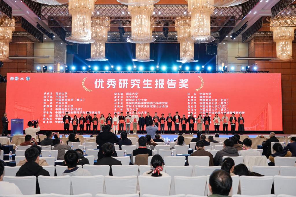本次会议以“智慧工程地质与城市地质安全”为主题,围绕地质体智能感知与多源数据融合技术、工程地质智能建模与反演、岩土体工程地质特性与智能分析等九个议题展开深入研讨。在学术交流环节,本次大会共安排学术报告约 570 个,其中大会特邀报告22个,分会场特邀报告 64 个,分会场一般报告 205 个,研究生论坛报告 279 个,为与会者带来了一场学术盛宴。经过激烈角逐与严格评审,年会评选出30位优秀研究生报告奖。中国地质学会工程地质专业委员会副主任委员葛永刚研究员主持闭幕式,彭建兵院士与同济大学石振明副校长共同为获奖者颁奖并合影留念。祁生文秘书长对2025年全国工程地质学术年会进行学术总结并宣布闭幕。2026年全国工程地质学术年会将由工程地质专业委员会和吉林大学共同承办。