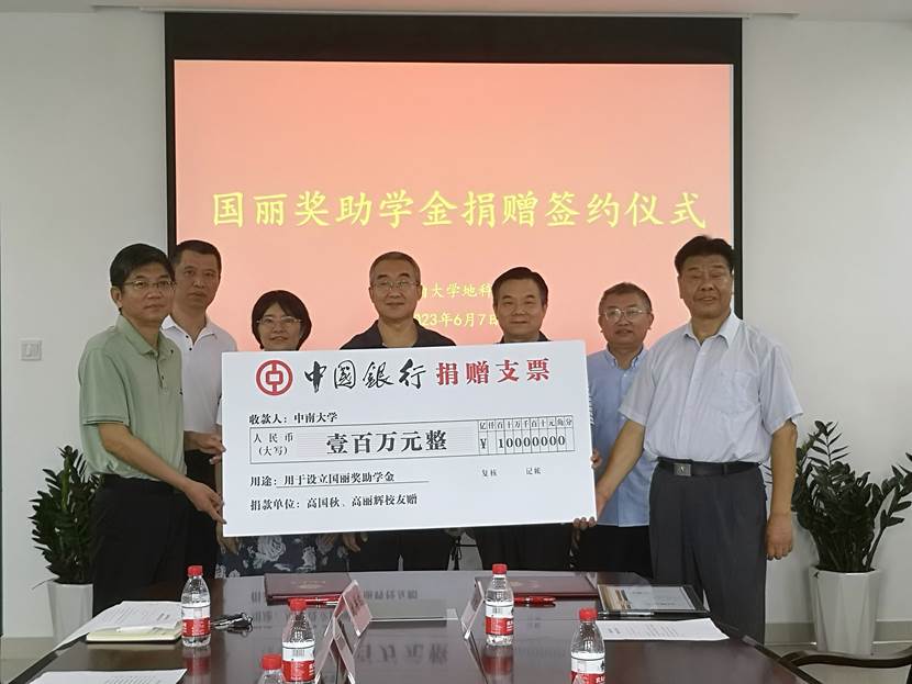 “国丽奖助学金”捐赠签约仪式在地科楼举行。此次捐赠者是地信院地质77级校友高国秋和物探80级校友高丽辉伉俪。由于他们侨居海外,特委托他们的好友我校马克思主义学院曾长秋教授代为出席。学校教育发展与校友事务办公室主任余文武、湘雅护理学院党委书记李涛、91论坛