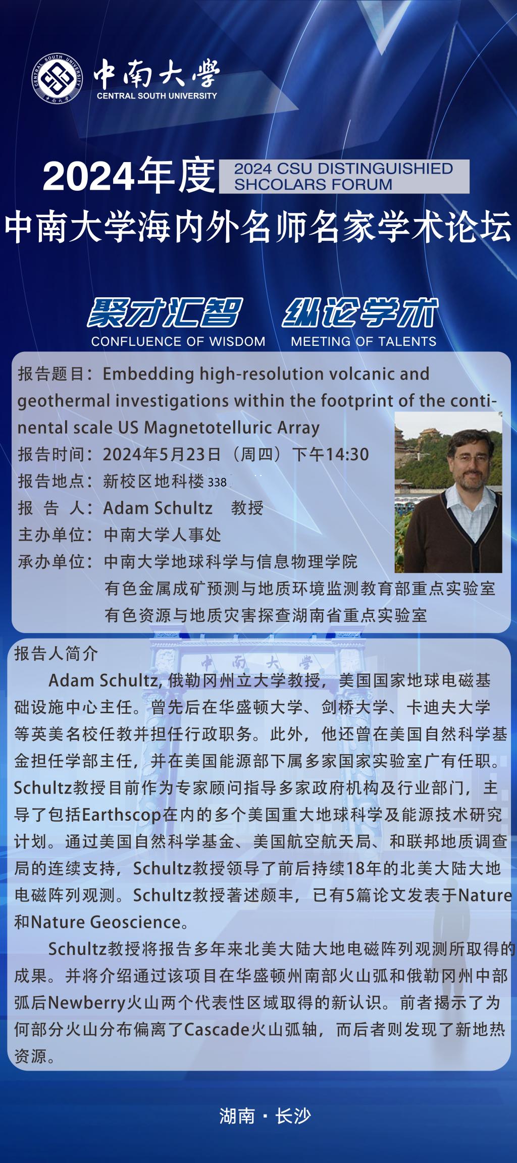 学术报告:Embedding high-resolution volcanic and geothermal investigations within the footprint of the continental scale US Magnetotelluric Array
