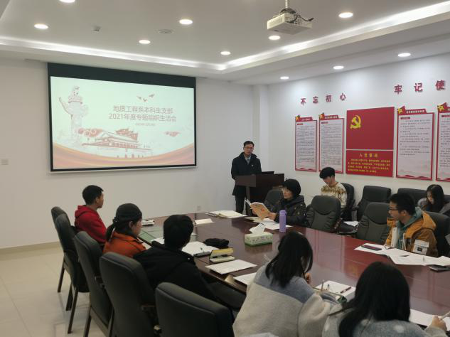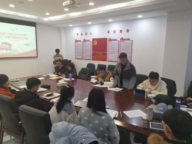 12月29日下午14:30,地质工程系本科生支部12月集体学习暨2021专题组织生活会在地科楼214顺利召开,支部书记杨通田、支部全体成员参加。学院党委副书记李建军老师莅临会议进行指导。