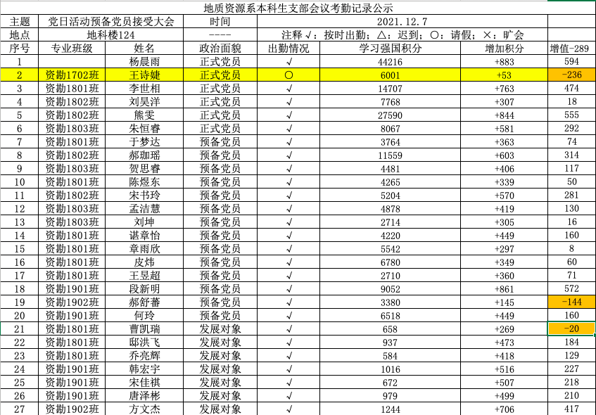 12月7日下午13点,地质资源系本科生支部于新校区地科楼124会议室进行了地质资源系本科生支部预备党员接收大会。本次会议由李世相同志主持,支部全体同志出席本次会议。