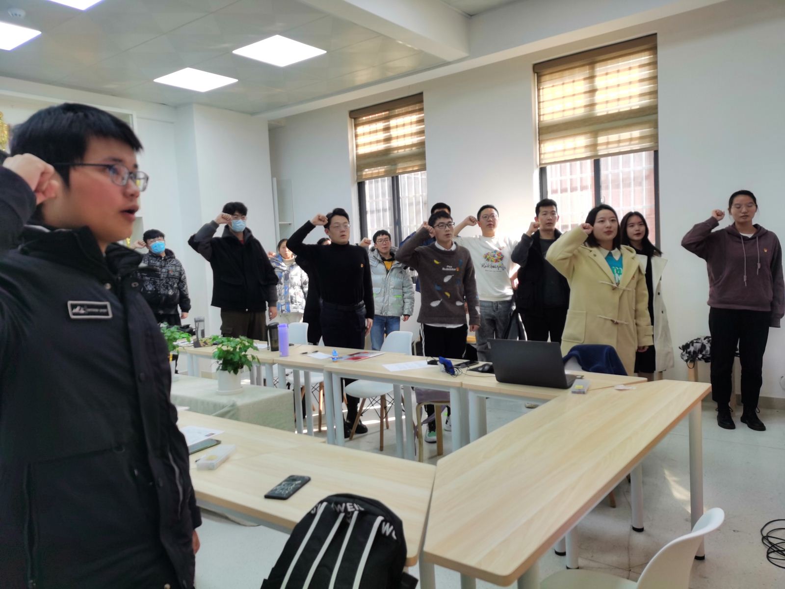 会议第三项,熊雯同志带领全体同志进行了庄严的入党宣誓。支部书记杨晨雨同志对接收的新同志表示了祝贺与欢迎,也希望各位新同志能够在今后的学习工作中尽职尽责,不忘初心,牢记使命。