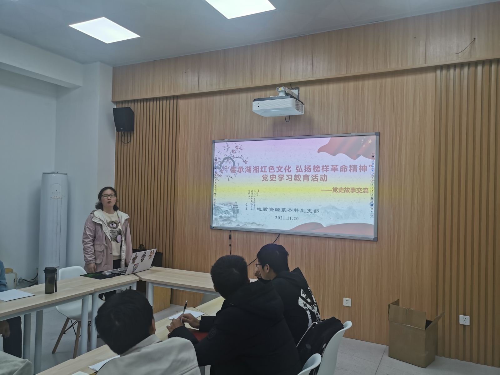 地球科学楼124活动室顺利开展“传承湖湘红色文化,弘扬榜样革命精神”党史故事分享会。本次活动由何玲同志主持,支部全体同志参加了本次故事分享会。