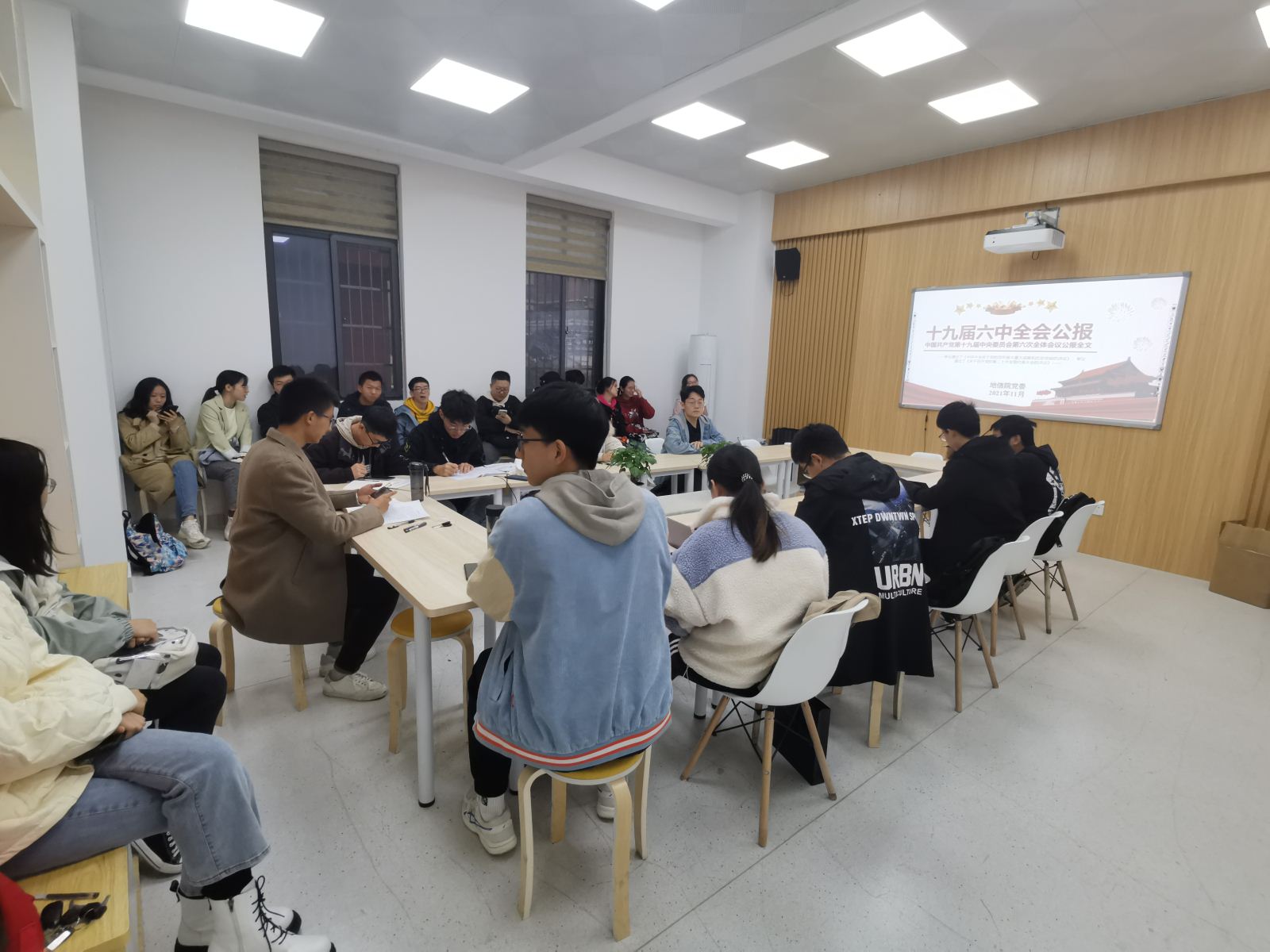 会议第二项是进行“中国共产党第十九届中央委员会第六次全体会议”专题党课学习。首先,支部书记杨晨雨同志带领支部成员回顾了十八大以来历届中央全会的主题和内容。接着,全体同志共同学习了第十九届六中全会概况和第十九届六中全会公报内容。最后,杨晨雨同志对本次专题党课学习进行总结,他提醒各位党员同志在会后仍需注意党政理论知识学习,可以借助各类网络媒体平台,如:新华社、人民日报、学习强国等。杨晨雨同志强调要认真学习习近平重要讲话精神以及会议工作报告,并且需要特别注意学习强国积分问题,端正学习态度,养成良好学习习惯,积极主动学习。