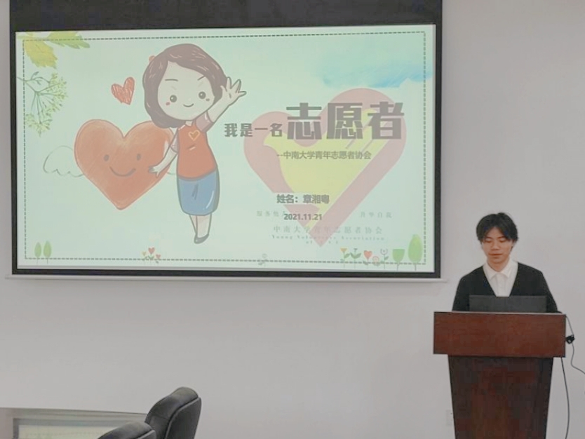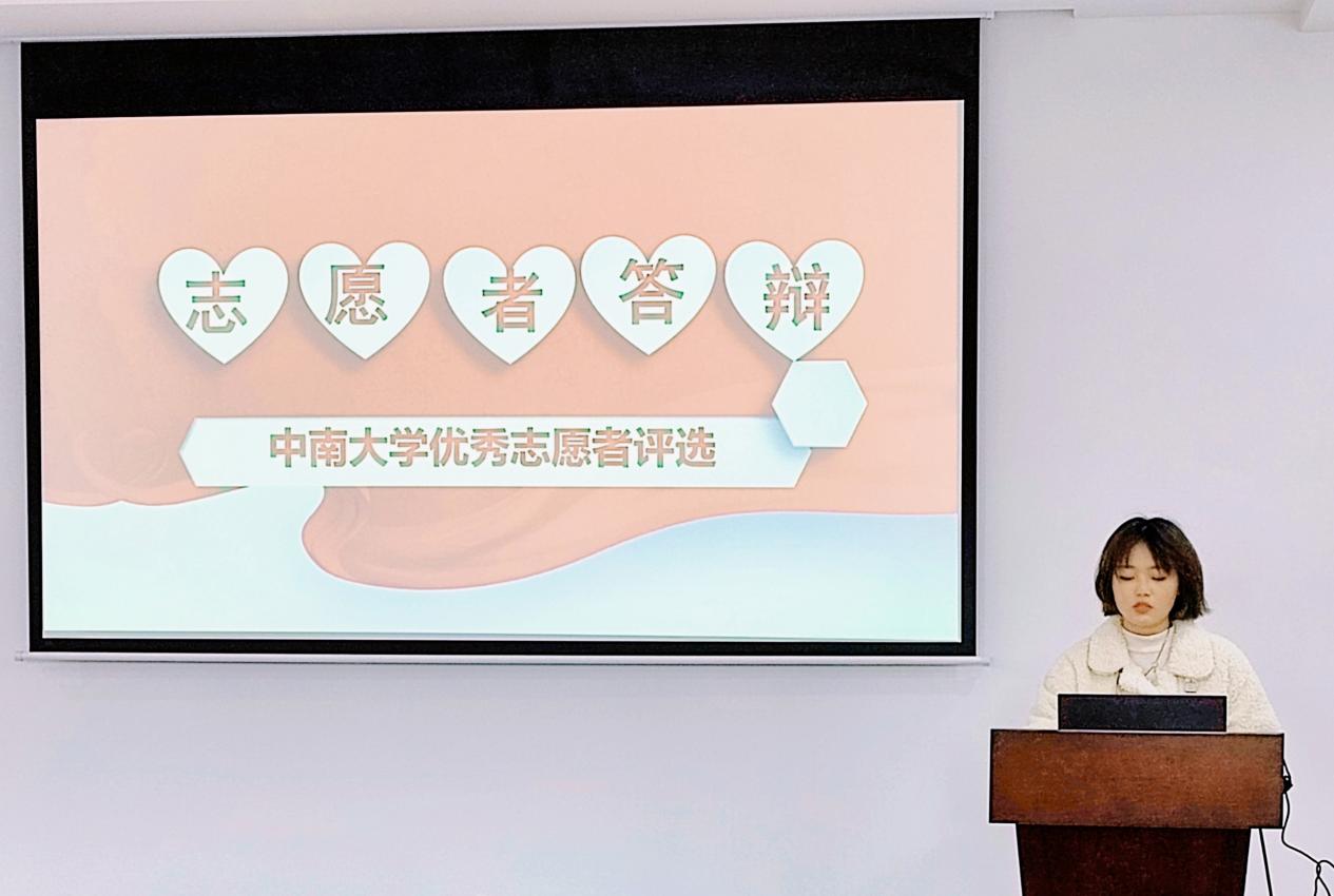 按照抽签顺序,首先进行答辩的是来自测绘2001班的田文瑄,现任学院青志协、院新媒体新闻部副部长。致力于公益事业,她前往丹霞山进行科普志愿者的学习,在湘江风光带调查“鸟撞”项目,参加中国团餐学会的“光盘行动”,热心于奉献和服务,她报名迎新志愿者、疫苗接种志愿者,参与无偿献血,在中国人体器官捐献志愿者名目下注册。