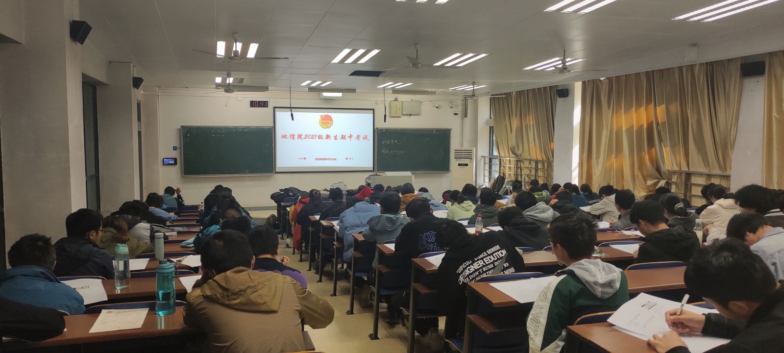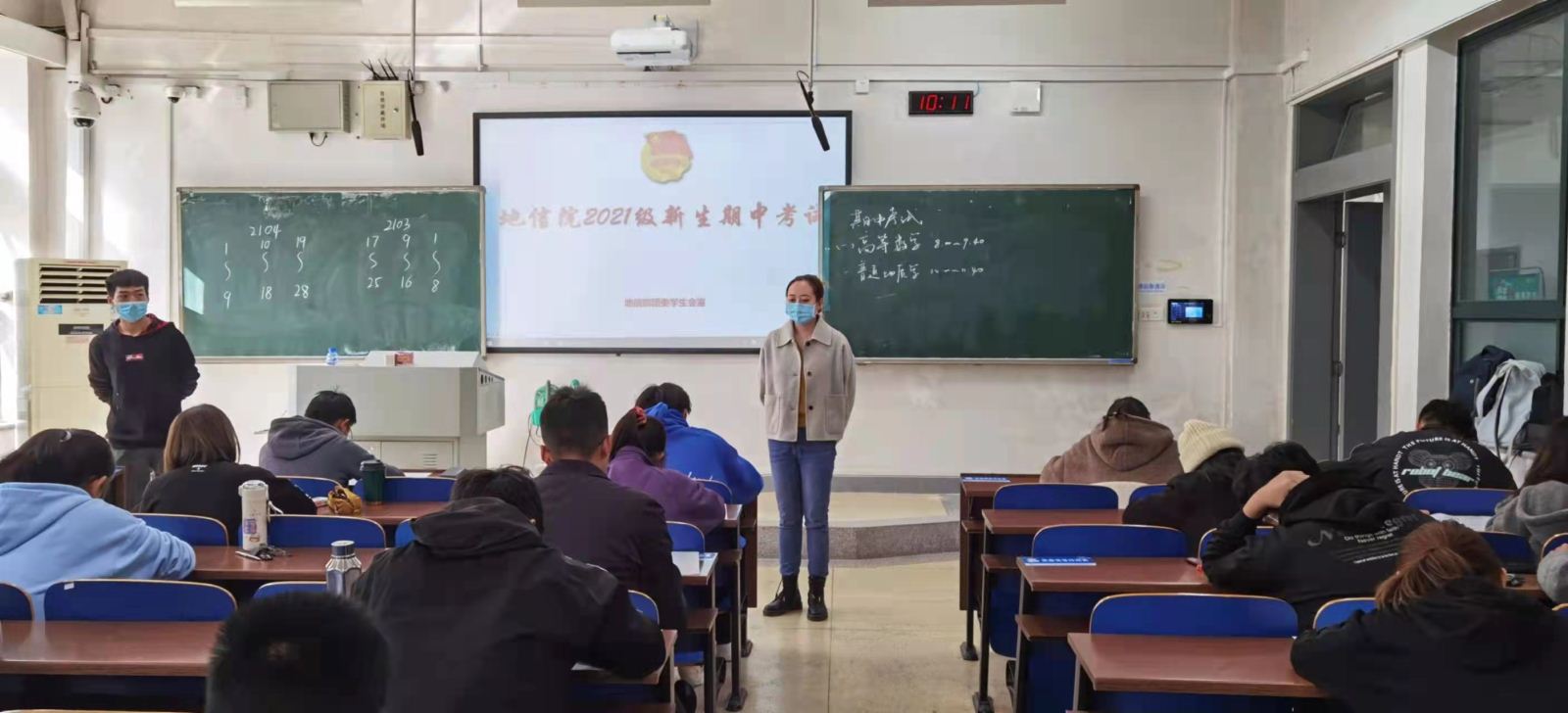 2021级新生期中考试于A座考室顺利举行。参加本次期中考试的是地信院21级的全体同学,并由地信院21级班助和地信智囊团成员作为监考人负责监考。