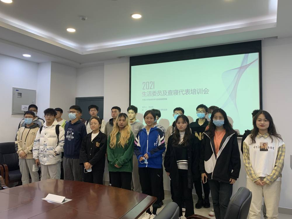 最后,所有参会人员合影留念。至此,本次会议圆满结束。本次培训会旨在帮助地信院21级各班生活委员们深入了解自己的工作与职责,为生活委员们提供工作经验与方法,提高工作能力。希望在接下来的一学期中,各位生活委员能够竭尽全力,服务同学,共同为地信院良好环境建设贡献青春力量!