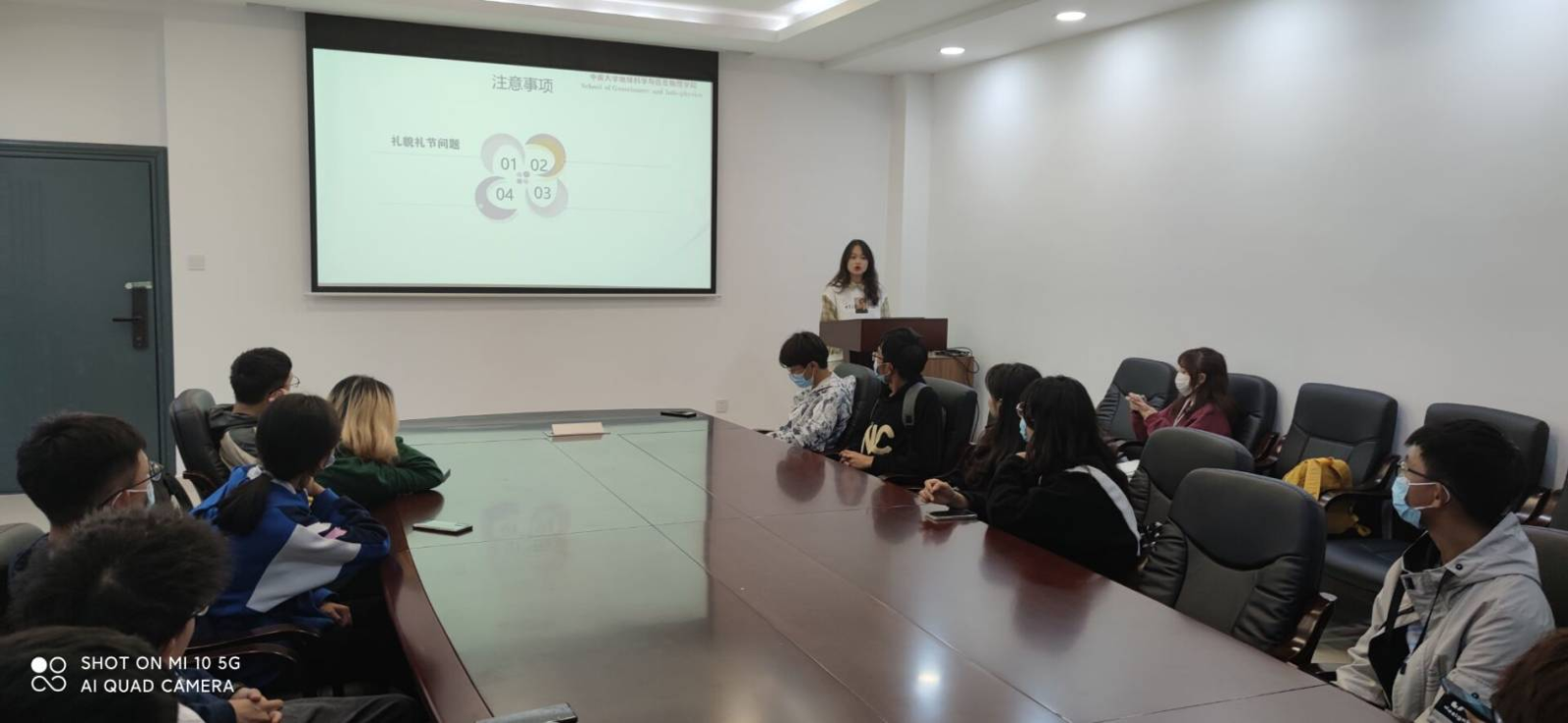 地信院21级生活委员及常规查寝活动培训会在地科楼214会议室举行,会议由生活权益部全体成员组织参与、生活权益部部长寇浚哲主讲,21级各班生活委员到会参加培训。