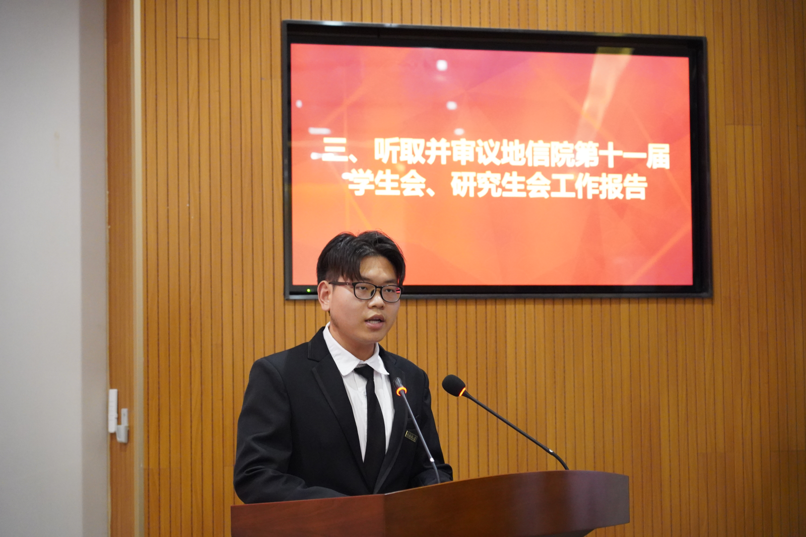 第十一届学生会、研究生会的工作进行了全面总结,选举产生了学院第十二届学生会、研究生会主席团,为新一学年的工作打下了坚实的基础。相信在院党委和校团委的领导下,在学院团委的具体指导下,在各级组织和全体同学的共同努力下,地信院新一届学生会、研究生会必将以更加饱满的工作热情为学校及学院的发展建设贡献青春力量,为谱写新时代坚持和发展中国特色社会主义的新篇章而努力奋斗!