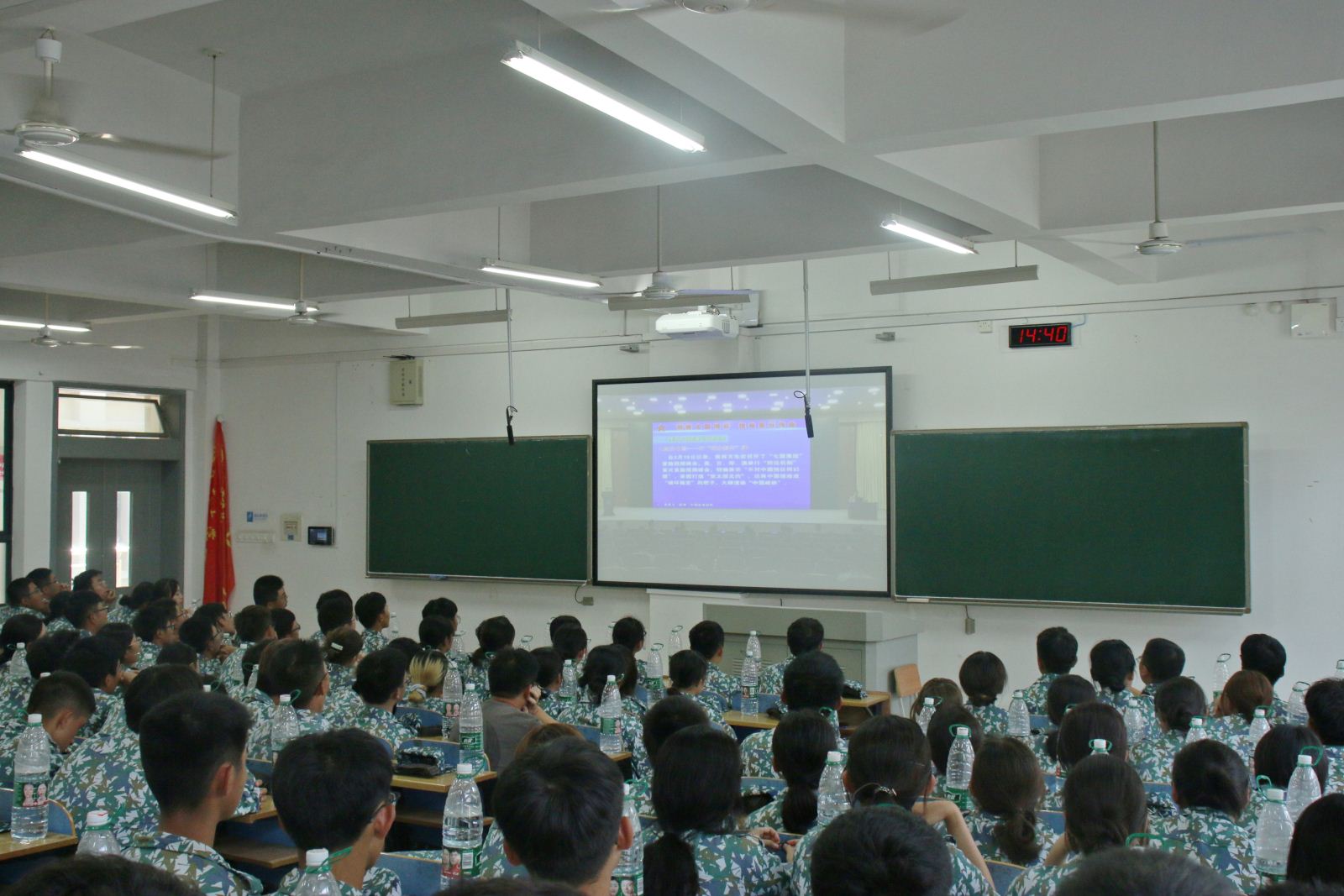 21级新生军训生活,进一步加强我校国防教育工作,9月19日下午14时30分,“洞察大国博弈,担当复兴伟业”主题讲座在新校区B座教学楼顺利举行。本次讲座邀请到湖南省衡南县武装部政委周久虎上校主讲,讲座通过线下讲授与线上直播相结合的方式向21级全体新生展现。