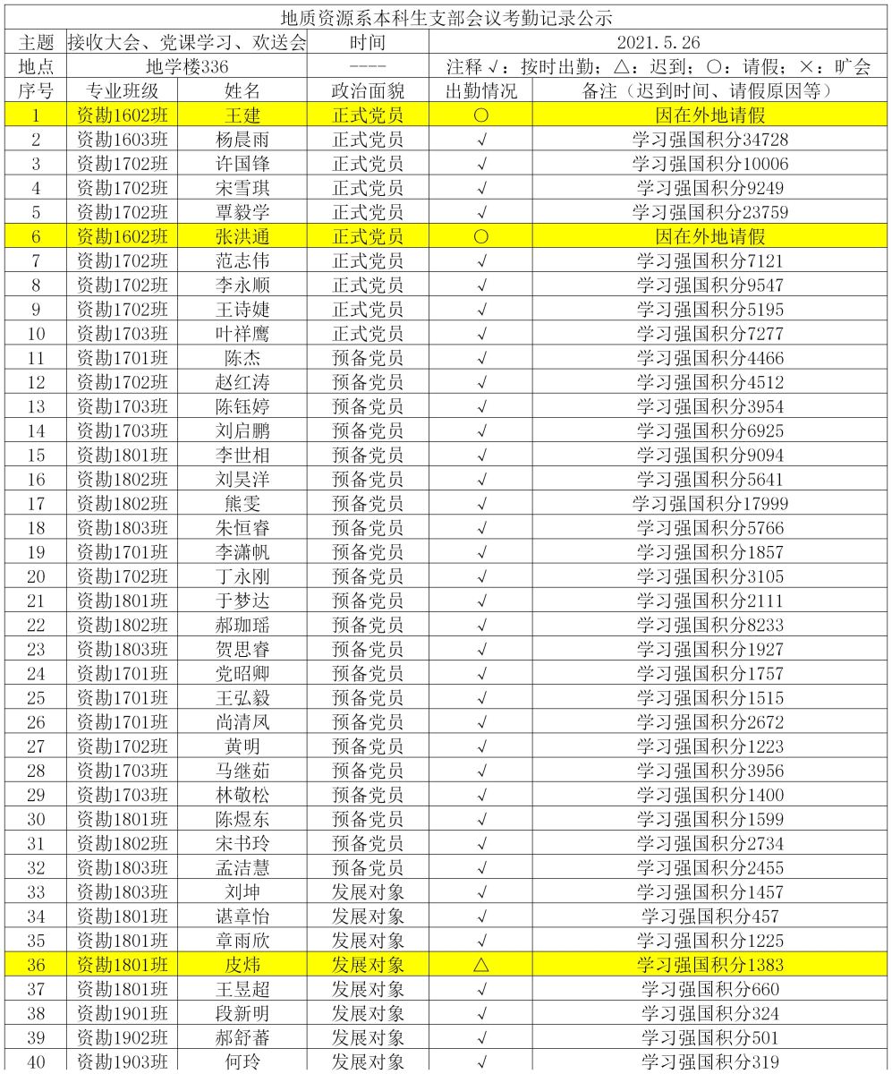 5月26日下午3点,地质资源系本科生支部2021届毕业生党员欢送会在地学楼336举行。地质资源系本科生支部全体党员参会,会议由朱恒睿同志主持。