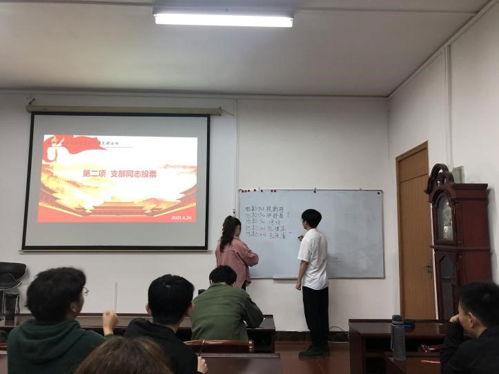 五位选手全部展示完毕后,支部全体成员进行了投票,支部同志对每个小组的优点与不足之处也进行了客观的点评,提出了修改建议和意见。最终,经熊雯同志唱票、王昱超同志记票,郝舒蕃同志脱颖而出,赢得此次活动的桂冠,也将代表地质资源系本科生支部参加院内的“学党史,担使命”理论专题微型党课竞赛活动。