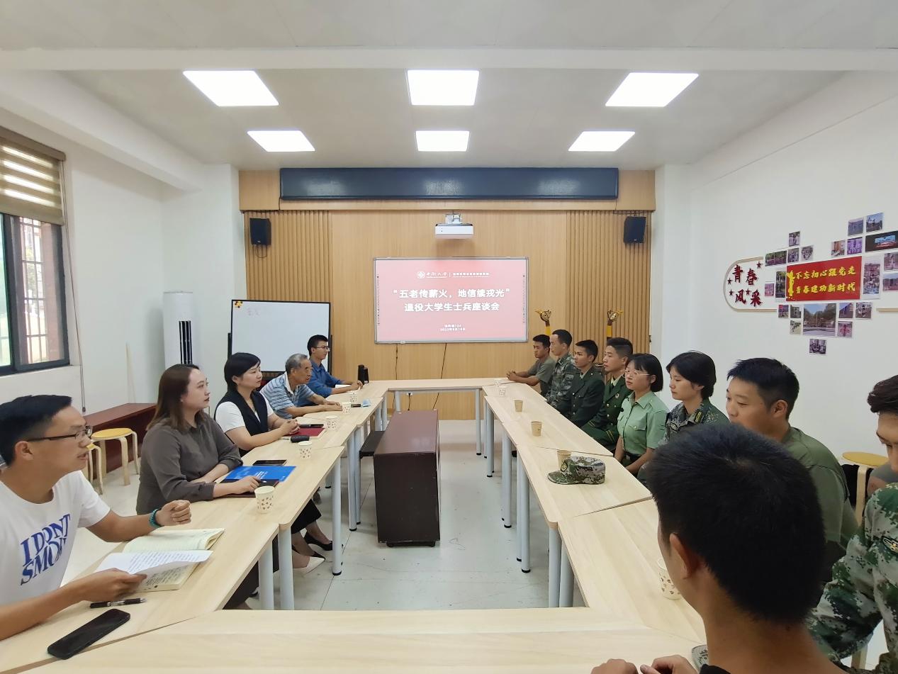 为响应党和国家的号召,推动大学生应征入伍工作,了解保障退伍大学生的日常学习与生活,9月16日15:00,地信院“五老传薪火,地信续戎光”退役大学生士兵座谈会于新校区地科楼124会议室顺利开展。本次座谈会由学院国防教育专干杨通田主持,地信院关工委常务副主任胡祥昭,地信院学工办副主任胡幽,地信院团委书记刘琦,地信院关工委秘书杨晨雨以及9名退伍大学生共同参与。