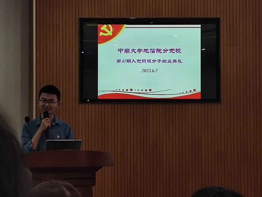 地信院党委分党校第47期入党积极分子培训班结业典礼在地球科学楼127报告厅顺利举行。此次典礼由第47期积极分子培训班班导师杨晨雨老师主持,发展对象培训班班导师杨通田老师及培训班162名学员参加。