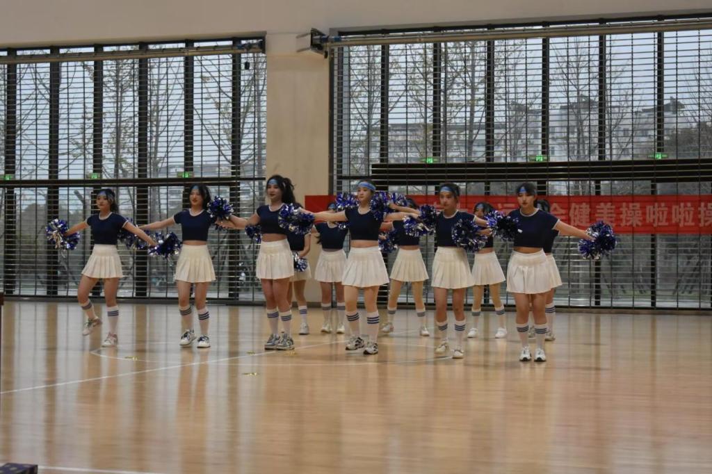 比赛分为健美操和花球啦啦操两部分。首先进行的是健美操比赛,场上的9名队员都展现了自己最佳的竞技状态,努力将动作做到最好;随后经过短暂的调整,花球啦啦操的比赛拉开帷幕,地信院共有11名队员参加此项比赛,她们互相配合,不时变换着队形;新颖独特的动作还体现着她们的独到的创新精神,展现出强大的团队协作能力和充满朝气的青春活力,赢得了场边观众的阵阵喝彩和评委老师的一致肯定。