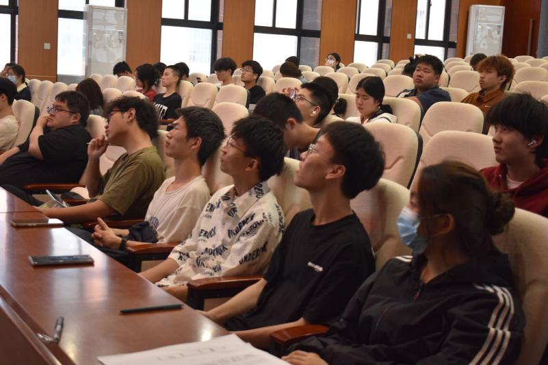2023年暑期社会实践校级立项团队队长龚一桓同学和李鑫涛同学作为主讲嘉宾,活动由马海明同学主持,22级、23级本科生代表到场学习。