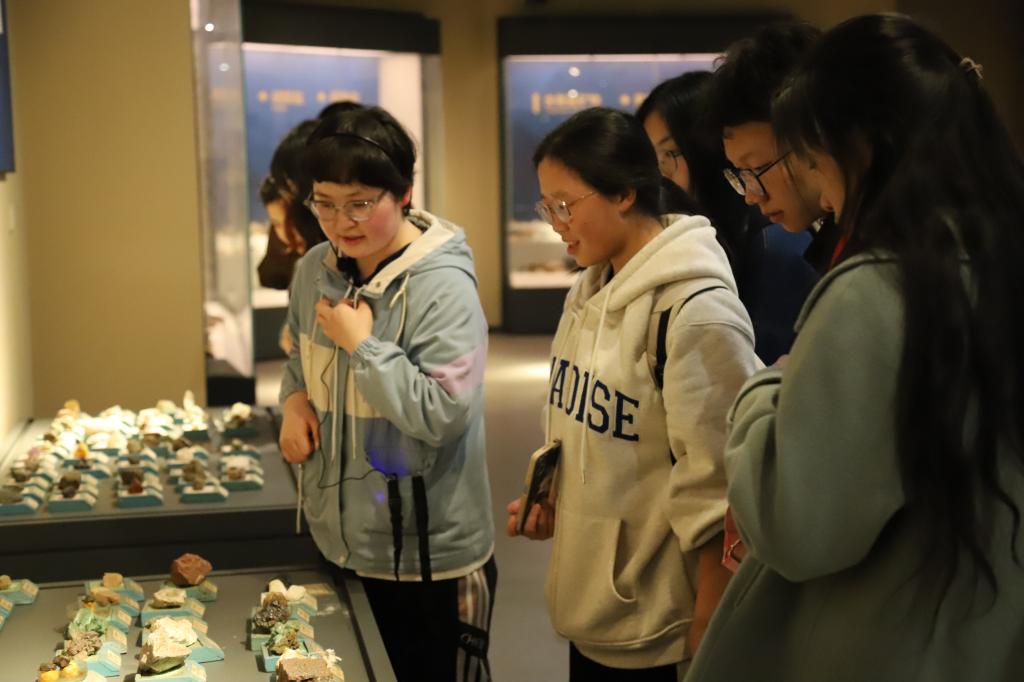 在讲解员的带领下,全体同学首先于91论坛 地质博物馆进行参观学习,了解了生命的起源与演化、矿产资源的形成与开发、矿石矿床的分类与特点,以及各类矿物岩石的形态、种类与演变规律等地质知识,让敬畏自然、和谐共生的科学发展理念更加深入人心。