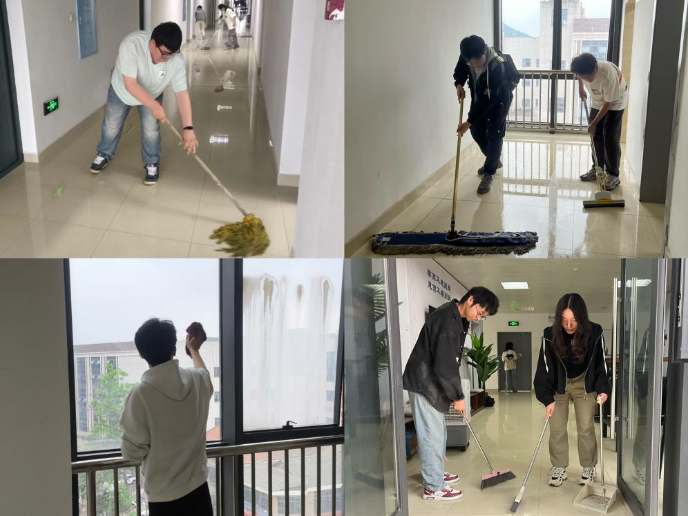党员先锋,洁净行动。本次实践教学共有57位党员发展对象参与,以实际行动践行党员先锋模范作用。手持扫帚、拖把、抹布等清洁工具,发展对象们深入地科楼各个角落,一丝不苟地进行清扫工作。从过道桌椅到走廊门窗,从楼栋大厅到文化空间,无一遗漏。在他们的精心打理下,地科楼面貌焕然一新,变得干净整洁、井然有序,充分展示了大家脚踏实地、服务群众的精神风貌。