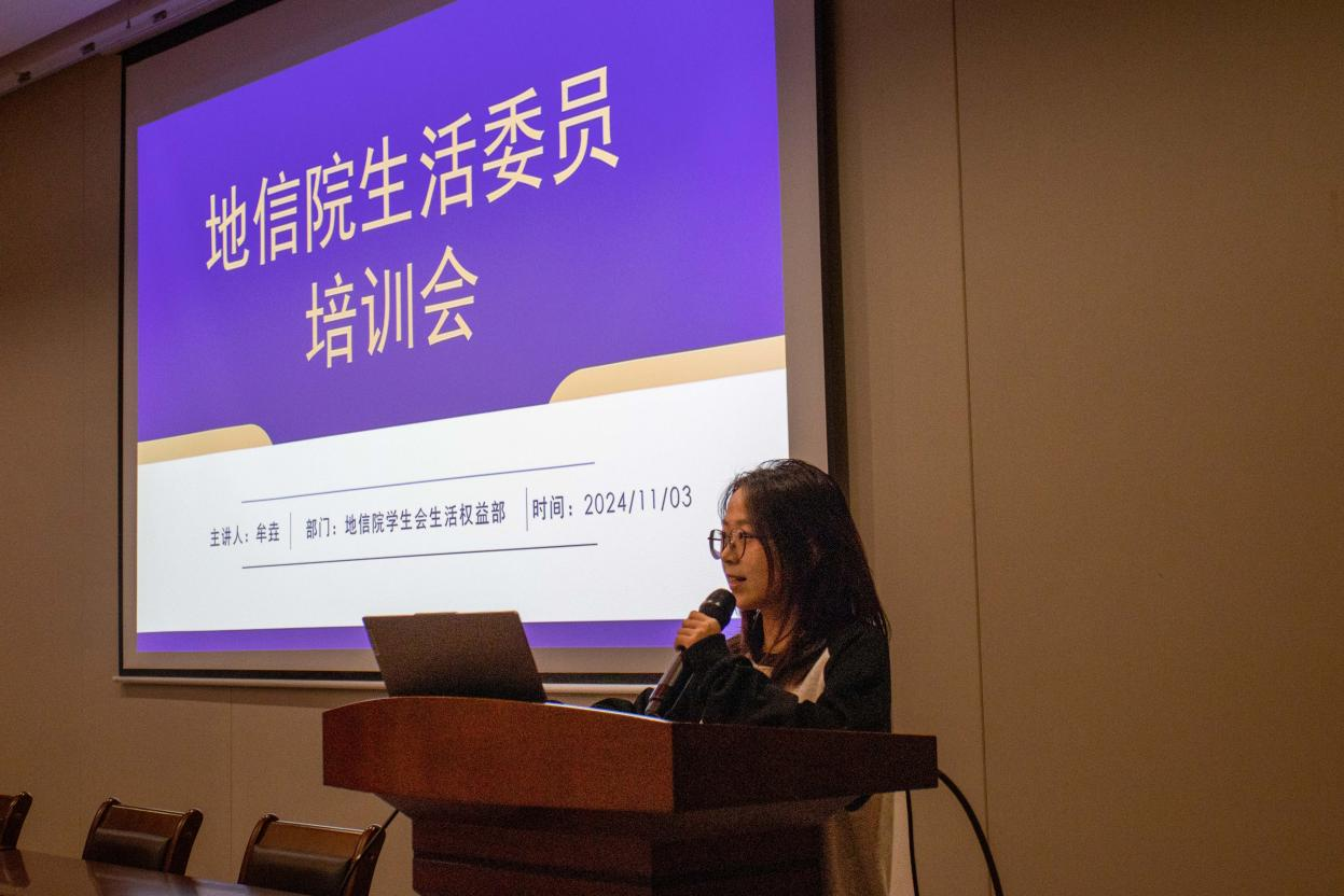 2024年11月3日晚,地信院2024-2025学年生活委员培训会在地球科学楼127报告厅顺利开展。地信院2022级、2023级、2024级全体生活委员参会,会议由地信院学生会生活权益部部长牟垚主持。