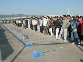 “旋风跑”,算得上最为刺激的项目了,选手们需要接受“离心力”的考验,全员绕桩360°,内圈的同学要拉紧外圈的同学保证他们不被甩飞,外圈的同学要紧靠内圈的同学确保自己不掉队。小小的游戏,展现了互相帮助,克服一切阻力向前冲的优秀作风。