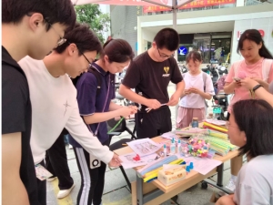 朋辈心理互助会于5月21日在麓南校区二食堂前坪举办了“手作拾光,温暖同行”积极心理体验营活动。本次活动将心理调节融入创意手工和趣味游戏中,吸引了众多同学踊跃参与,活动现场秩序井然、气氛热烈。