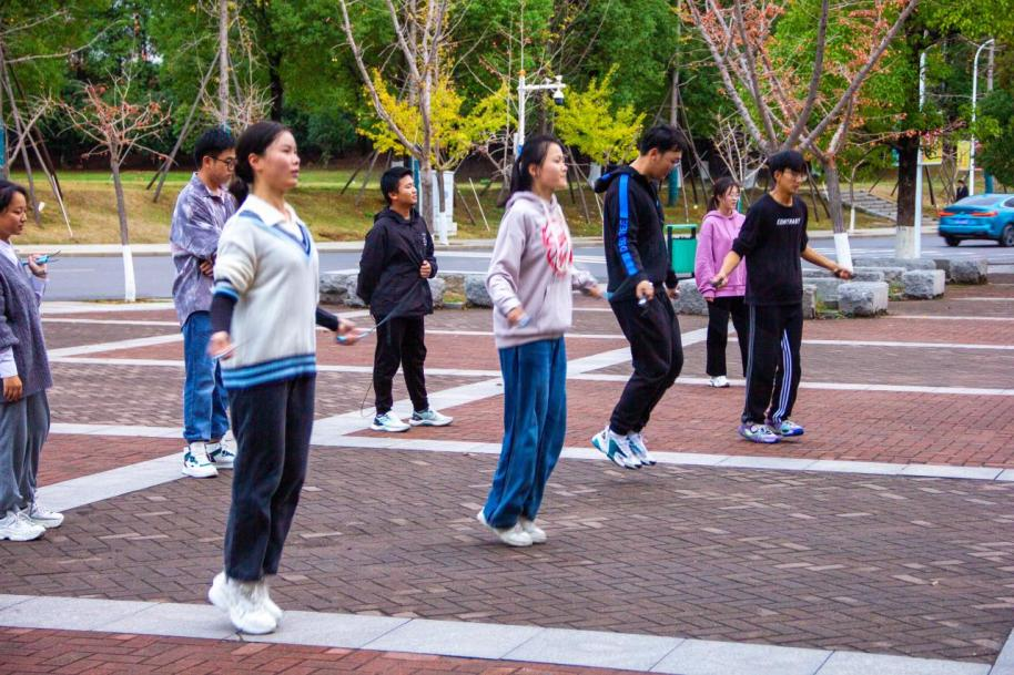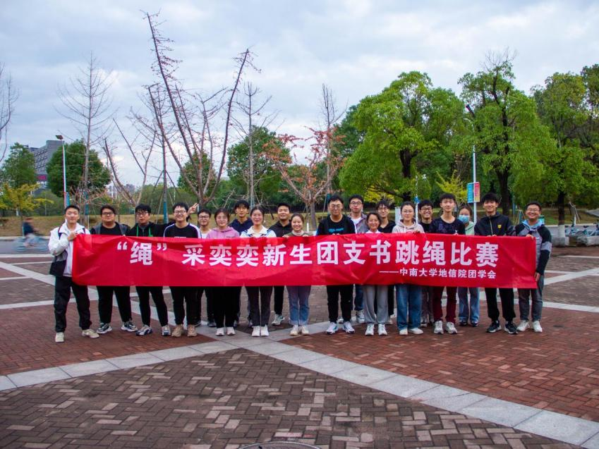 团委在新校区鸟巢体育馆外开展“绳”采奕奕跳绳比赛,地信院2022级新生团支书参加活动。