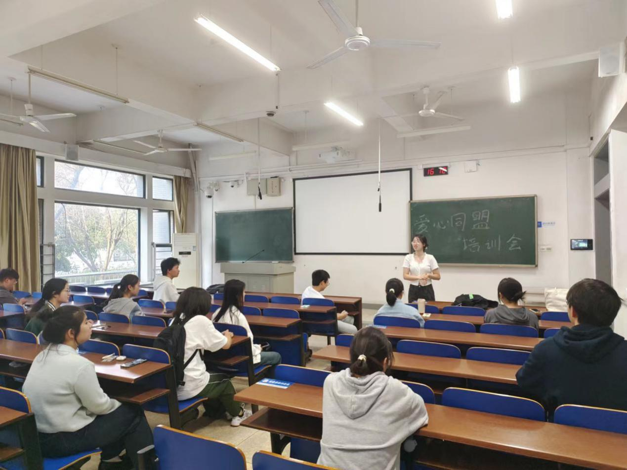 活动前的培训由爱心同盟副社长王冰主持,就安全和交流方式等活动细节进行了强调。成员分为4个小组,每组5人。在培训会上大家提议交流为主,为了避免交流障碍,社团购买了一些简单娱乐道具方便爱心活动的进行。