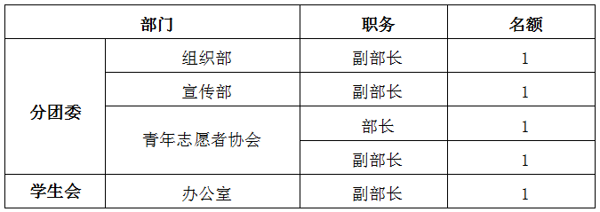 决定对第十二届团委、学生会部长团空缺职位进行补招选拔工作,相关事项通知如下: